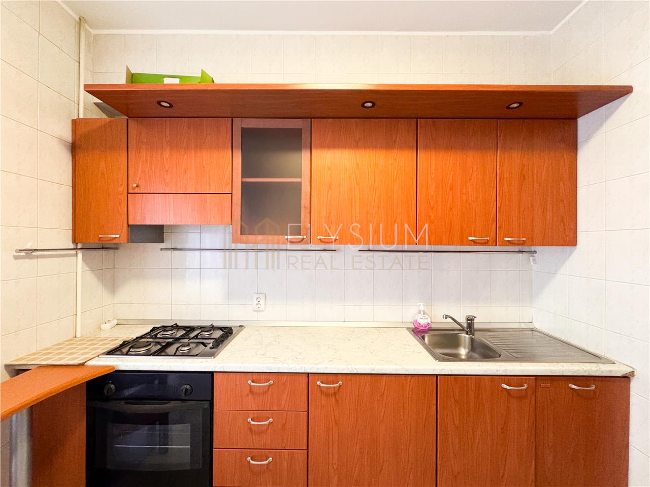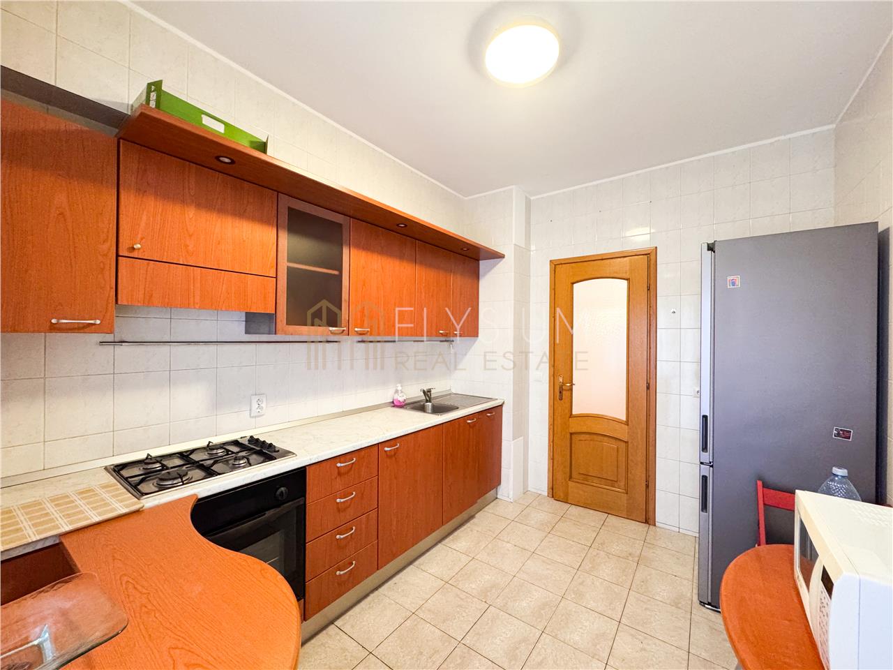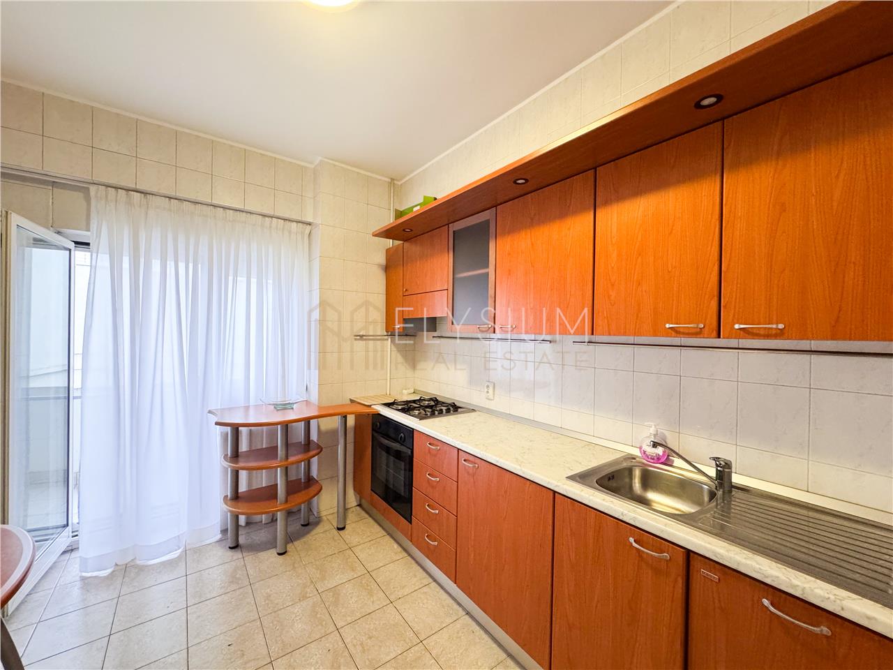 - Bucataria este complet mobilata cu multiple spatii de depozitare si electrocasnice moderne si dispune de un mic spatiu pentru servit masa, potrivit pentru 2 persoane, dar si de acces catre unul dintre balcoanele apartamentului.