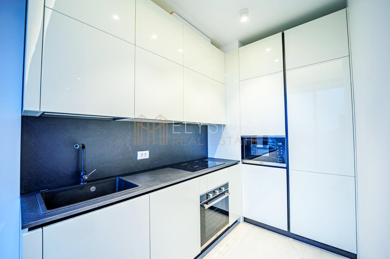 Apartamentul se inchiriaza partial mobilat si dispune de living, bucatarie deschisa ce este complet mobilata cu mutiple spatii de depozitare si utilata cu electrocasnice noi, dormitor cu spatii de depozitare si o baie ce deserveste atat zona de noapte cat si zona de zi, dotata cu dus tip walk-in, lavoar si toaleta.