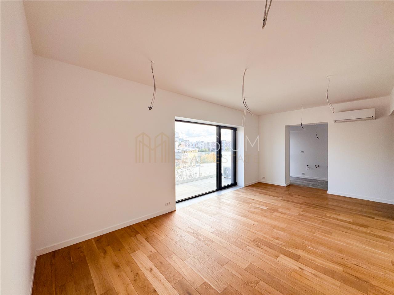 Apartamentul cu 2 camere propus dispune de o suprafata construita de 58mp ce include un living, bucatarie semi-inchisa, dormitor, baie si o terasa cu o suprafata de 7.2mp. Acesta beneficiaza de o dispunere tip semidecomandat si finisaje premium precum parchetul, gresia si faianta. In plus, acesta dispune si de un aer conditionat deja montat.
