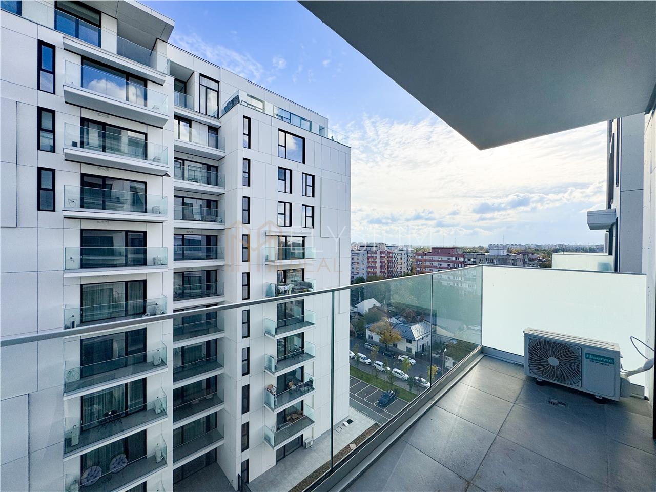 Apartamentul cu 2 camere propus dispune de o suprafata construita de 58.5mp ce include un open-space cu living si bucatarie, dormitor, baie si o terasa cu o suprafata de 7.2mp. Acesta beneficiaza de o dispunere tip semidecomandat si finisaje premium precum parchetul, gresia si faianta. In plus, acesta dispune si de un aer conditionat deja montat.