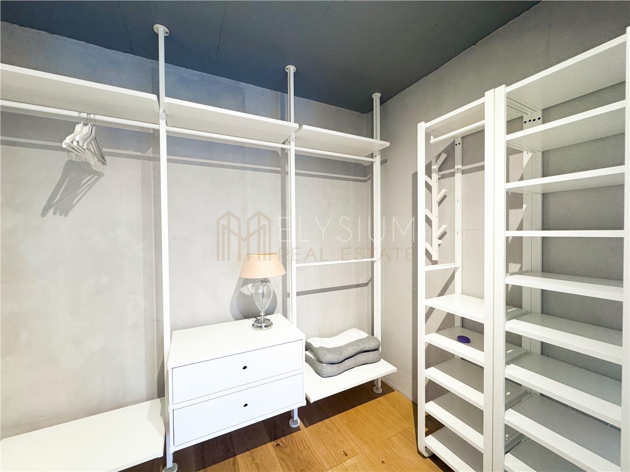 - Dormitorul matrimonial dispune de o suprafata generoasa, este amenajat intim cu un pat de dimensiuni mari, noptiere si are acces catre o camera separata de dressing.
