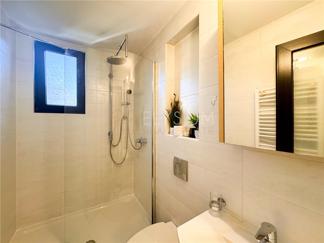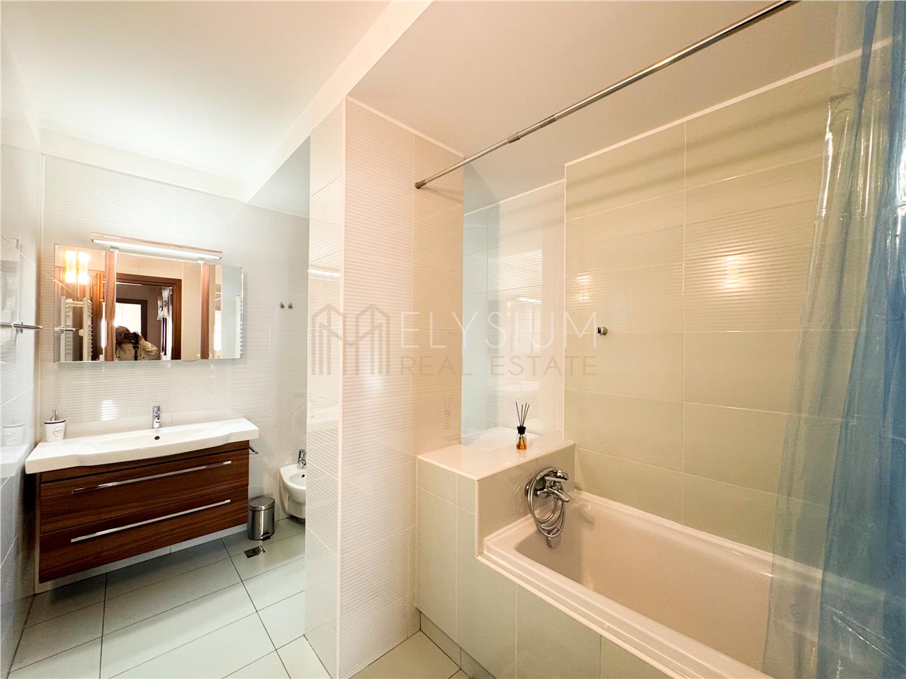 - Baia secundara a apartamentului deserveste atat zona de zi cat si al doilea dormitor si este dotata cu lavoar, cada, vas de toaleta si bideu.