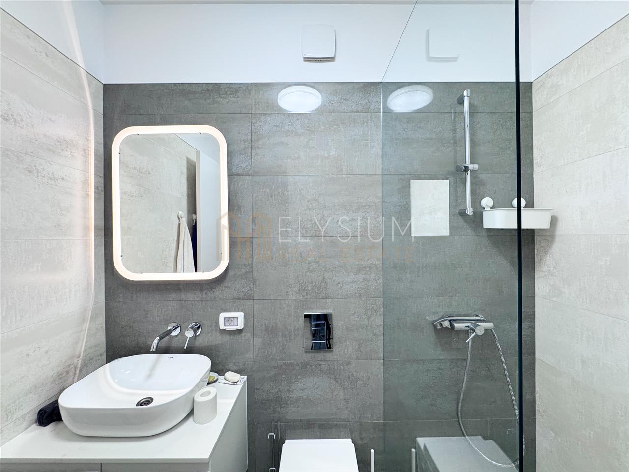 - Cea de-a doua baie este comuna atat celui de-al doilea dormitor, cat si zonei de zi a apartamentului. Echipata cu toate dotarile necesare unui spatiu sanitar dintr-un apartament de lux, aceasta este situata convenabil pentru acces usor din orice parte a apartamentului.