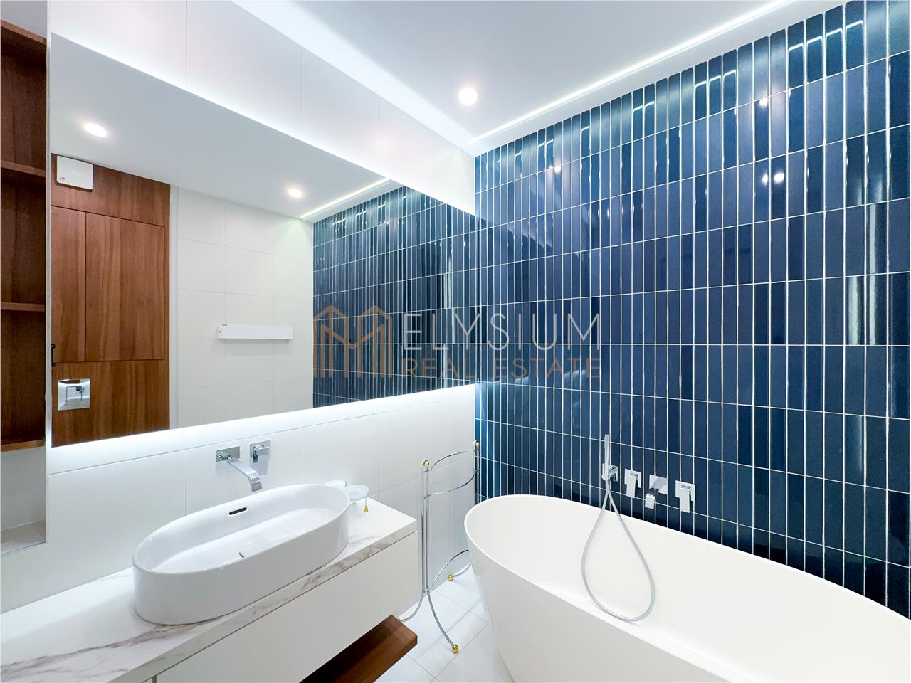 - Baia principala a apartamentului este dotata cu o cada aspect vintage, lavoar, vas de toaleta si spatii de depozitare si deserveste zona de noapte a apartamentului,