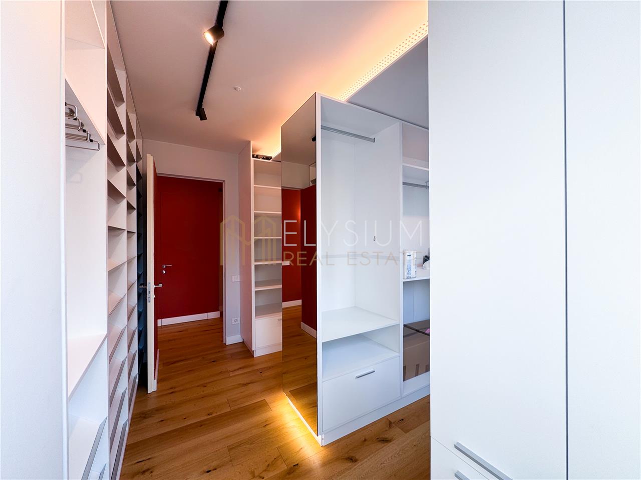 - Dormitorul secundar este amenajat in totalitate ca spatiu de dressing si este mobilat cu multiple dulapuri si etajere.