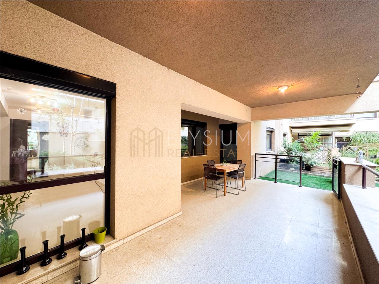 Terasa apartamentului este amenajata cu mobilier aferent si beneficiaza si de un spatiu verde privat, fiind un loc ideal unde va puteti bucura de momente de relaxare in aer liber.