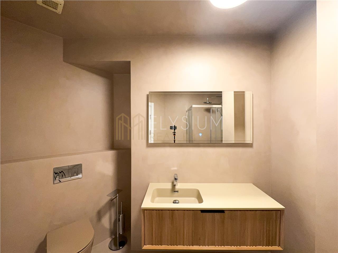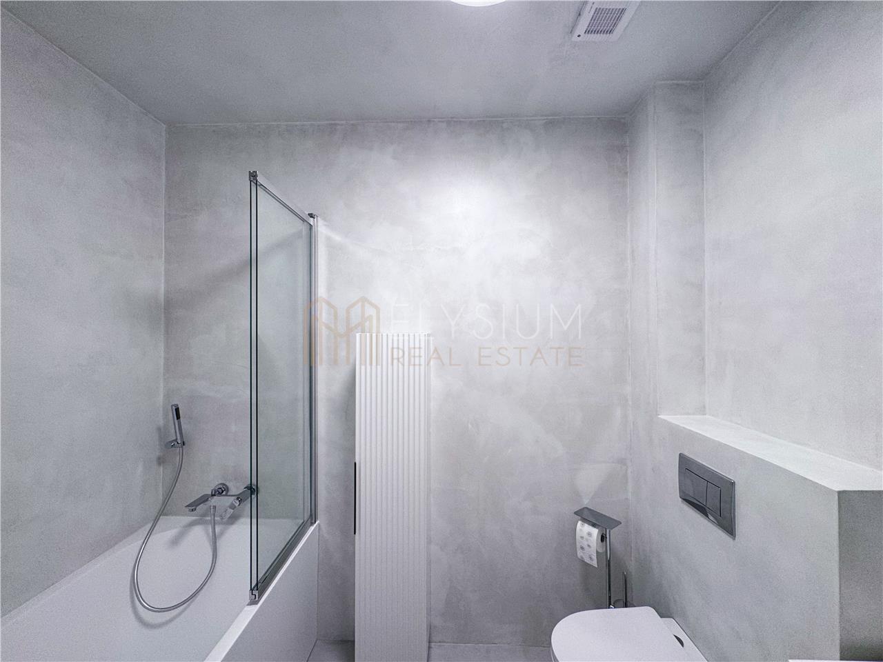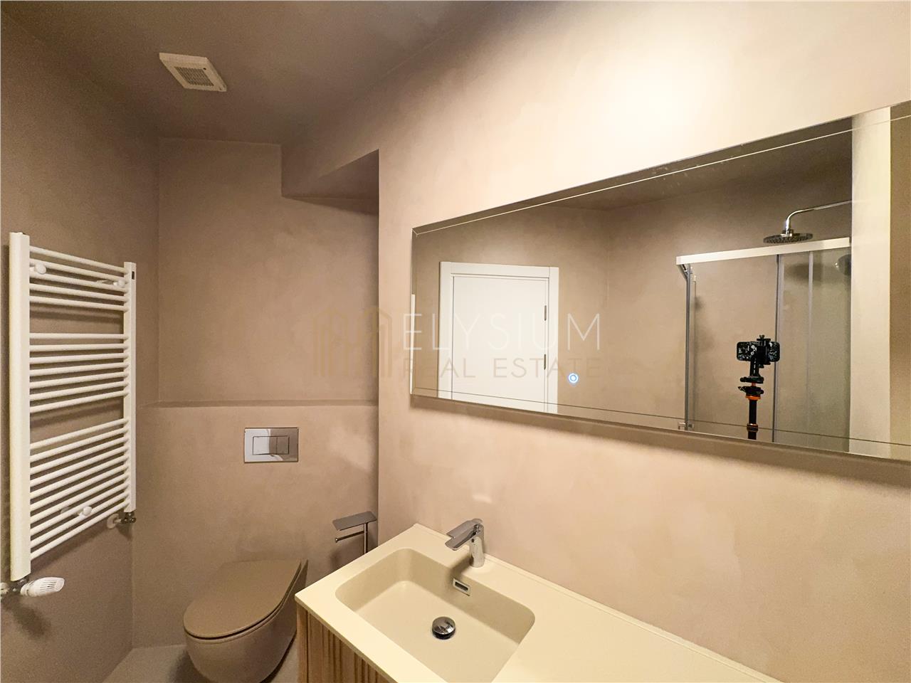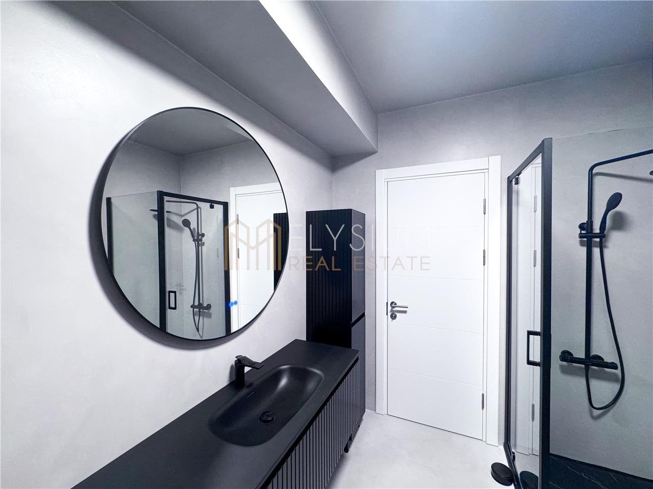 - Zona de noapte dispune de inca o baie individuala, ce poate deservi si zona de zi, si este dotata cu dus, lavoar, vas de toaleta, spatii de depozitare, masina de spalat si uscator de rufe.