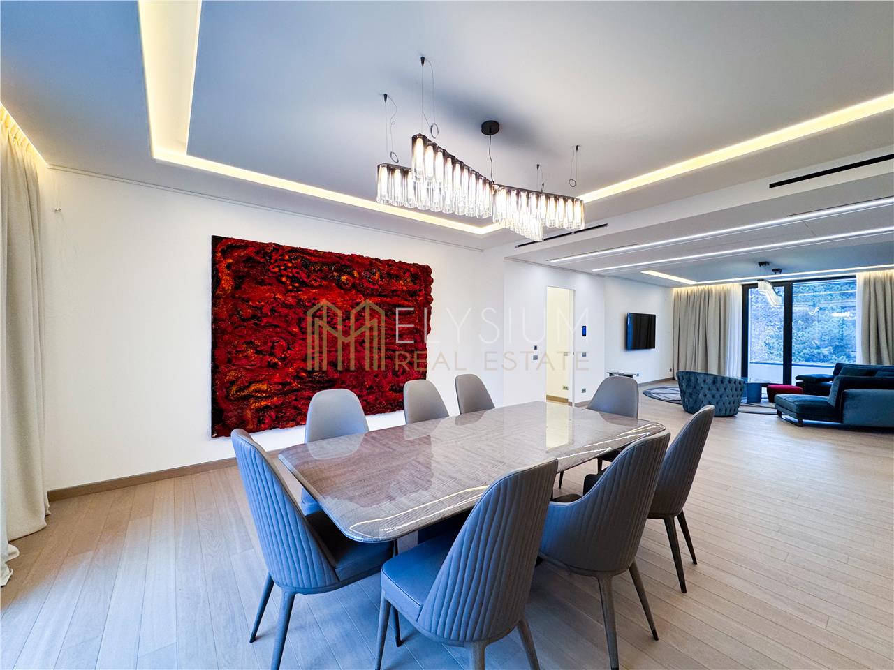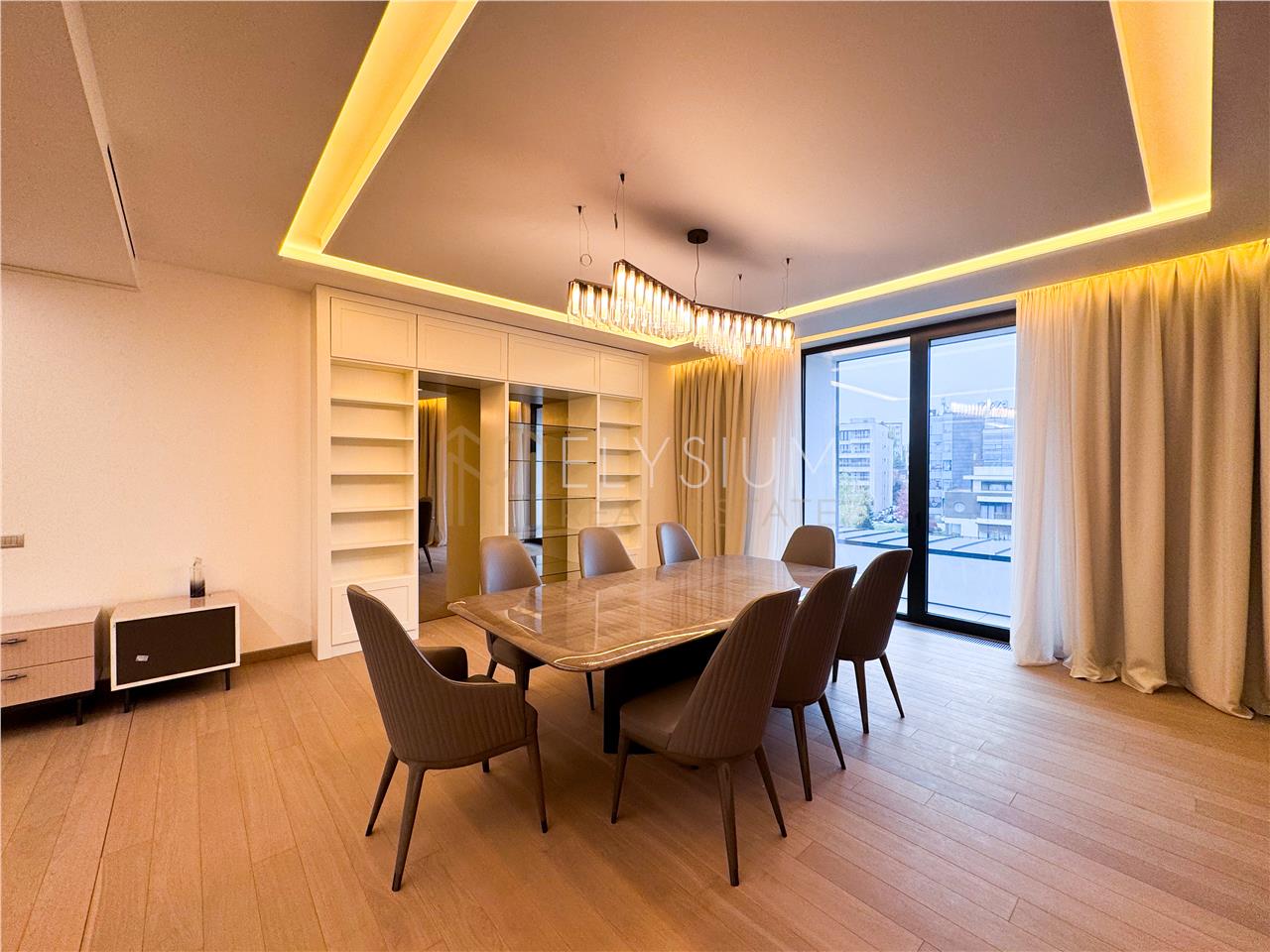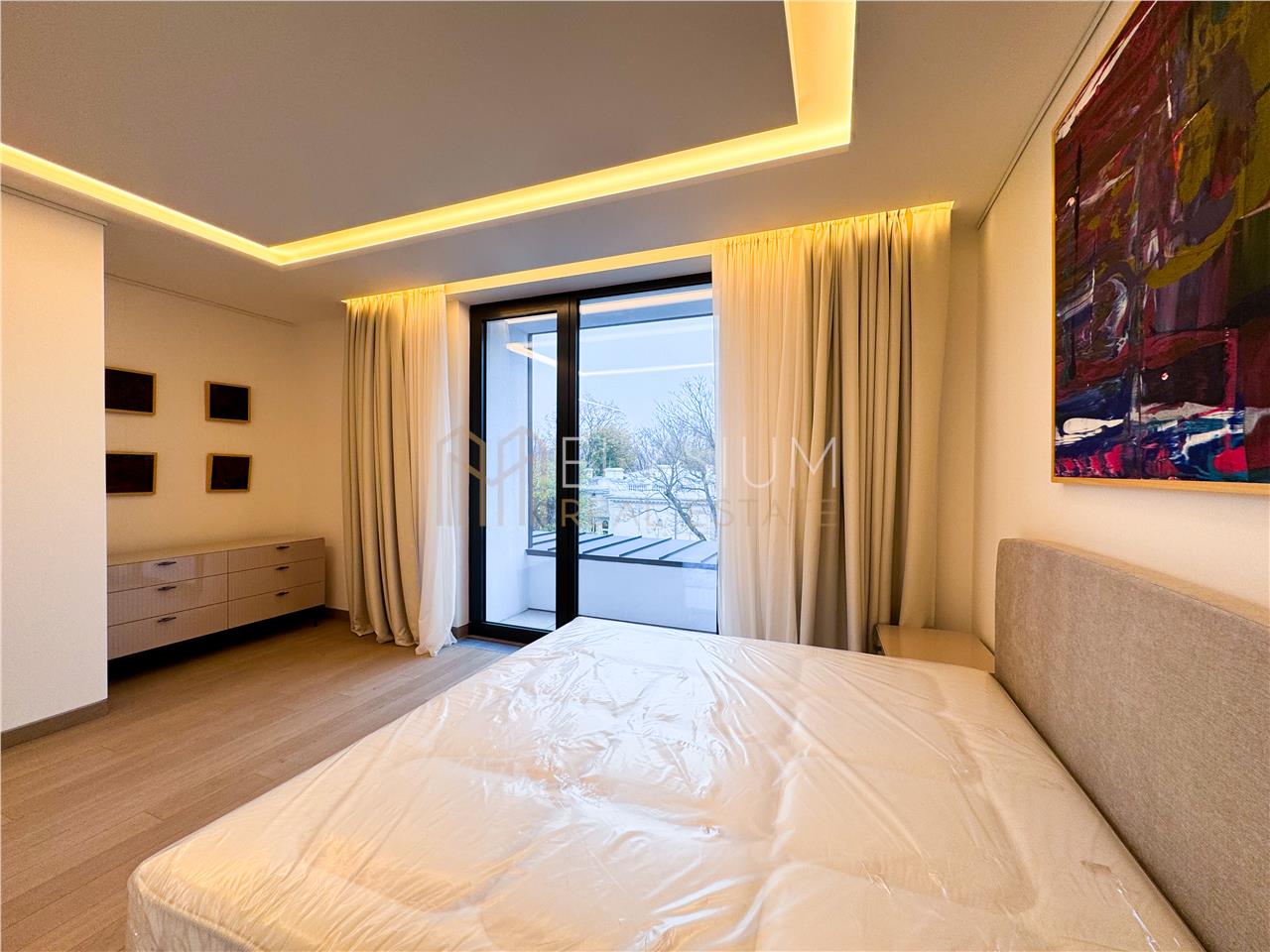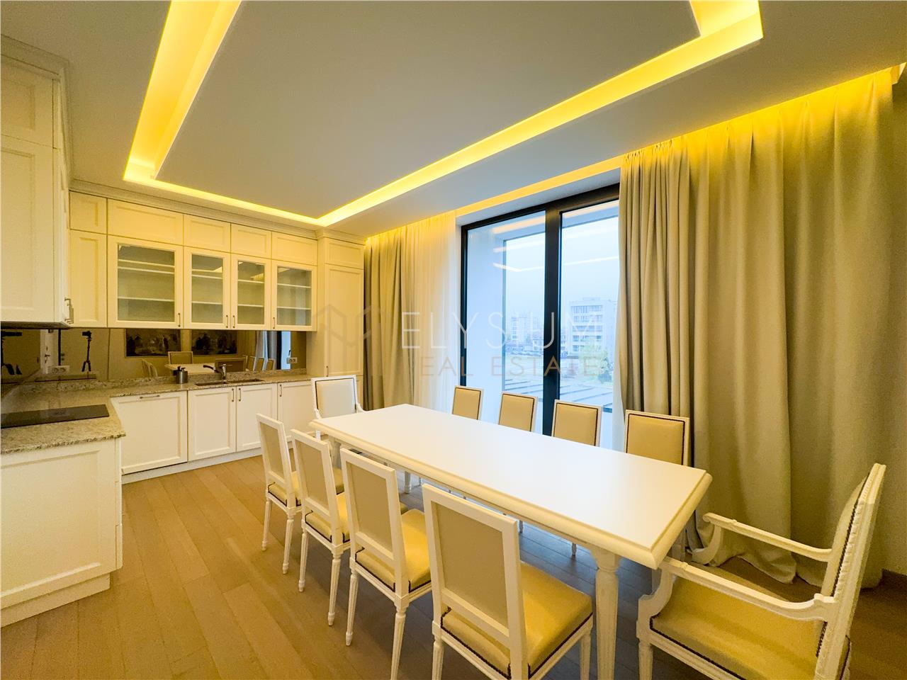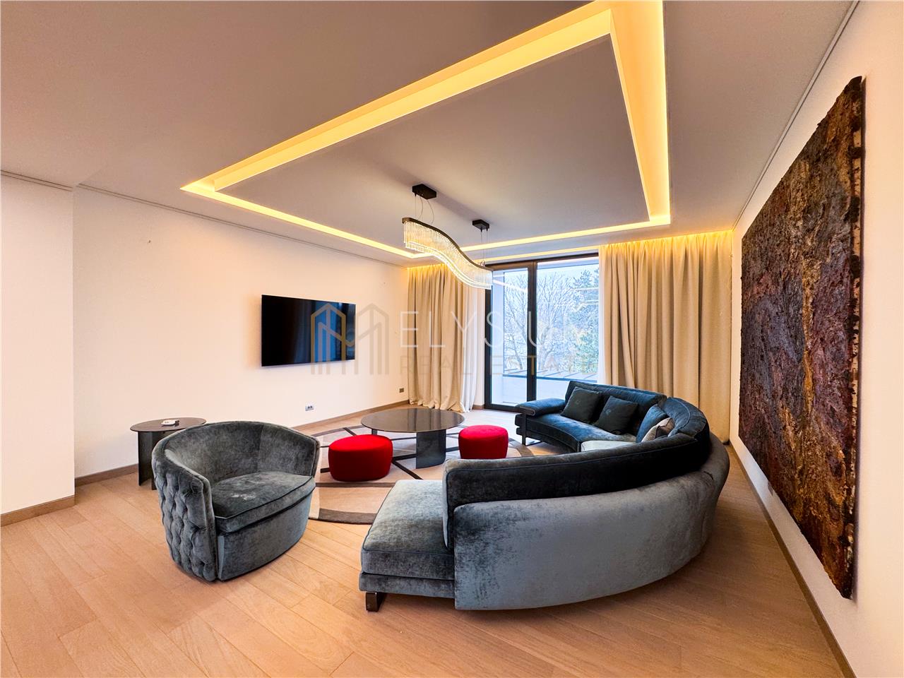 Va prezentam un apartament cu 4 camere propus spre inchiriere, o proprietate de lux situata intr-un imobil nou si exclusivist in cartierul Kiseleff, in imediata apropiere de Arcul de Triumf. Complexul de apartamente este situat pe Bulevardul Kiseleff, retras de la bulevard, dispune de nenumarate facilitati precum acces la sala de fitness si spa dedicate exclusiv rezidentilor, gradina si sala de evenimente unde se pot organiza atat evenimente private cat si corporate, o galerie de arta, tehnologie Smart Home Integrata ce permite reglarea iluminatului si al temperaturii in apartamente si monitorizarea accesului la intrarea in complex. Toate apartamentele sunt mobilate cu mobilier premium Giorgio Collection, unul dintre cei mai renumiti producatori italieni de mobilier de lux, cunoscut pentru mobilierul sofisticat si finisajele impecabile, ce va deschide si primul Showroom din Romania in interiorul complexului.
