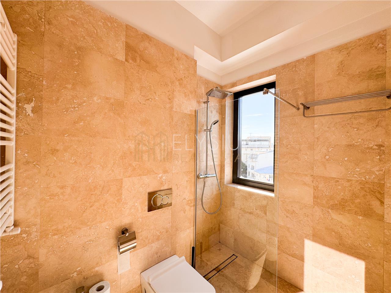 - Baia secundara a apartamentului este dotata cu dus tip walk-in, lavoar dublu, vas de toaleta si bideu si dispune si de o zona separata de spalatorie.