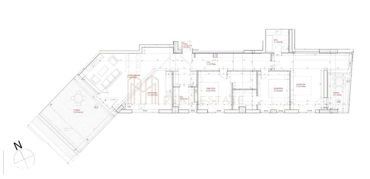 Apartamentul cu 4 camere dispune de o suprafata de 134mp, la care se adauga o terasa deschisa generoasa si un balcon. Acest apartament are o compartimentare de tip decomandat si o configuratie ce delimiteaza corect zona de zi si zona de noapte.