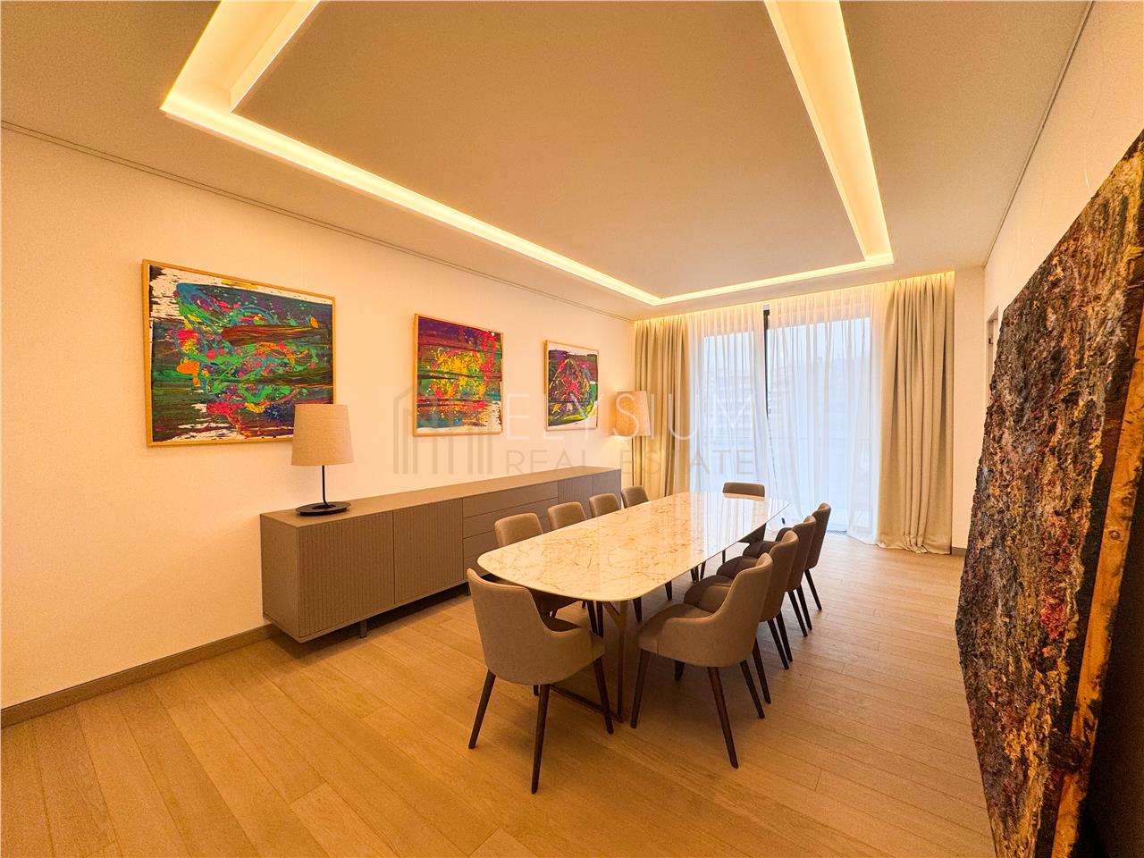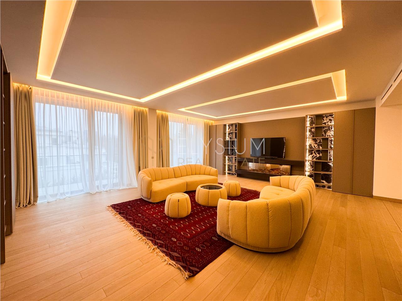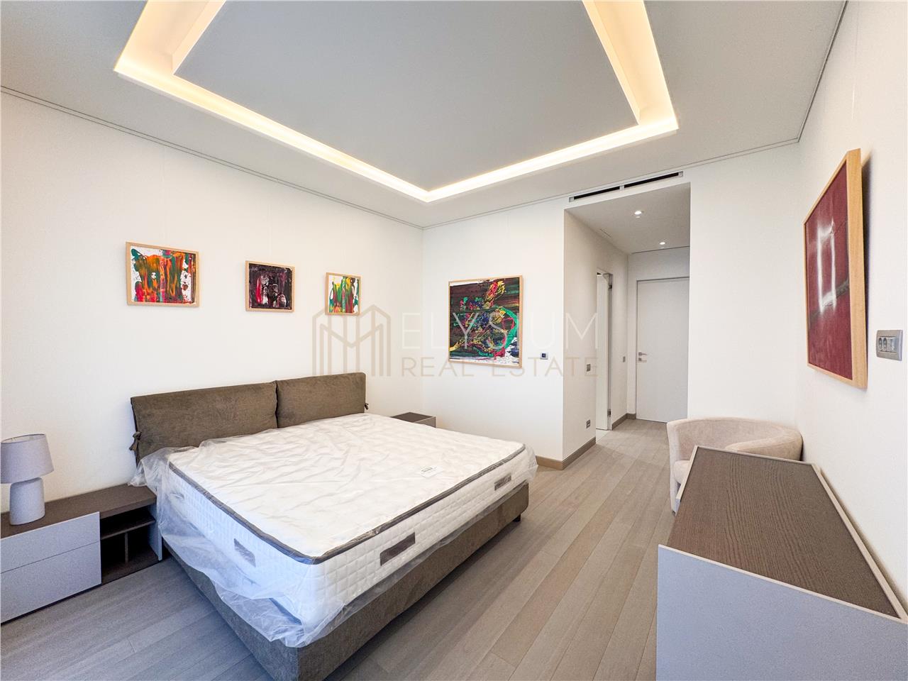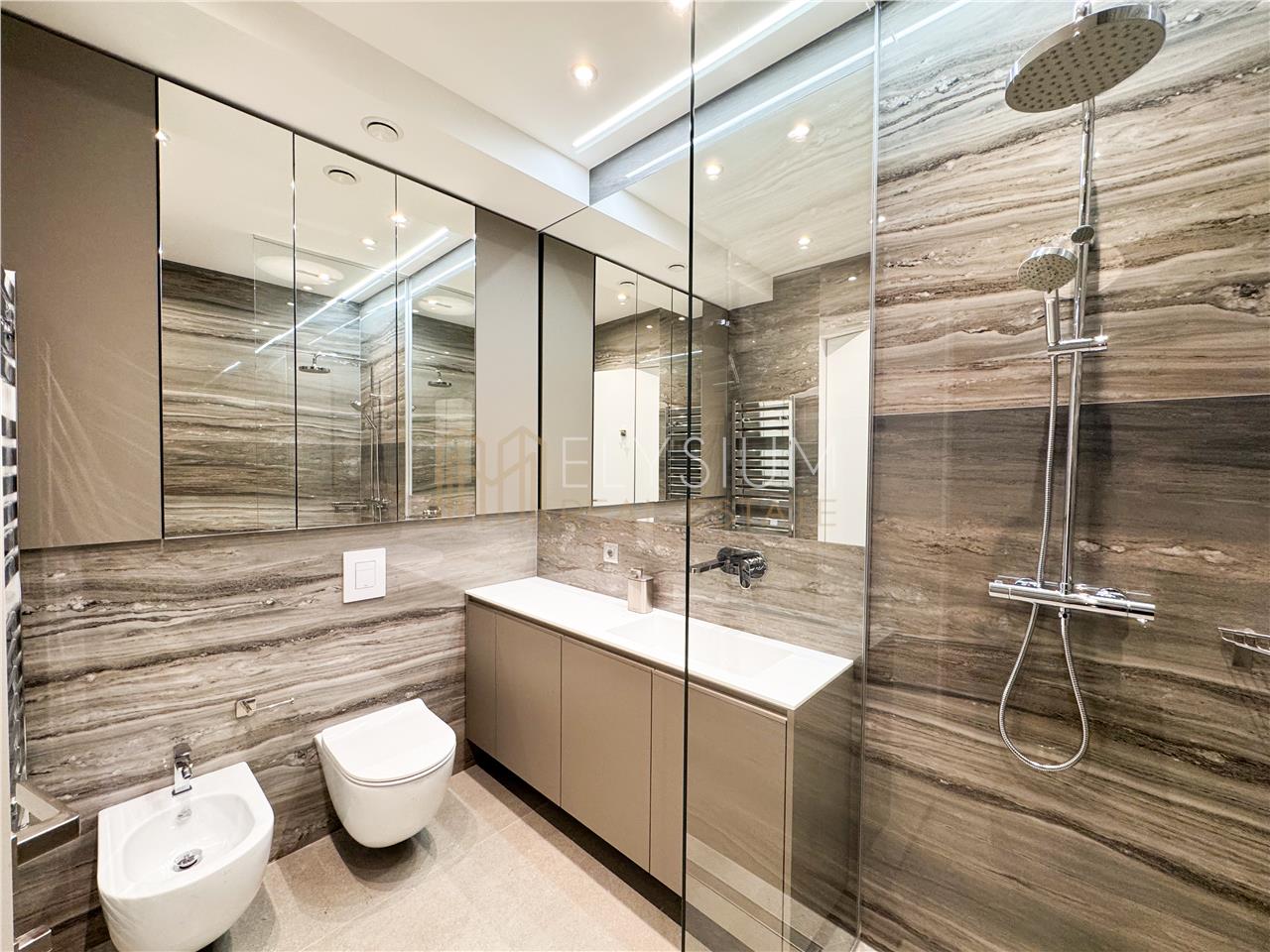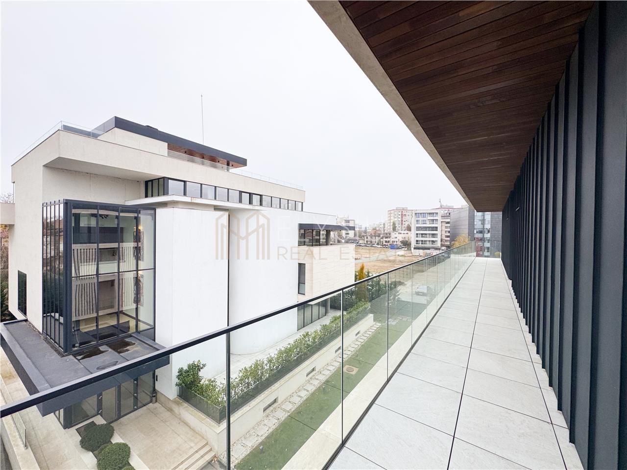Va prezentam un apartament cu 5 camere propus spre inchiriere, o proprietate de lux situata intr-un imobil nou si exclusivist in cartierul Kiseleff, in imediata apropiere de Arcul de Triumf. Complexul de apartamente este situat pe Bulevardul Kiseleff, retras de la bulevard, dispune de nenumarate facilitati precum acces la sala de fitness si spa dedicate exclusiv rezidentilor, gradina si sala de evenimente unde se pot organiza atat evenimente private cat si corporate, o galerie de arta, tehnologie Smart Home Integrata ce permite reglarea iluminatului si al temperaturii in apartamente si monitorizarea accesului la intrarea in complex. Toate apartamentele sunt mobilate cu mobilier premium Giorgio Collection, unul dintre cei mai renumiti producatori italieni de mobilier de lux, cunoscut pentru mobilierul sofisticat si finisajele impecabile, ce va deschide si primul Showroom din Romania in interiorul complexului.
