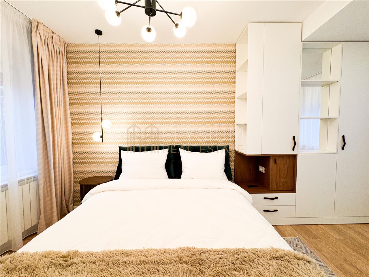 We present to you a 2-bedroom apartment available for rent, located in a boutique building in a luxury and exclusive area of the capital, in the Aviatorilor neighborhood, on Aviatorilor Boulevard, close to Kiseleff Park, the Arch of Triumph, and Herastrau Park. The building was constructed in 2007 and has a limited number of apartments. The apartment stands out due to its generous space, high-end furnishings, modern appliances, and prestigious location, predominantly surrounded by green spaces that contribute to maintaining clean air. It is also home to a select and close-knit community.