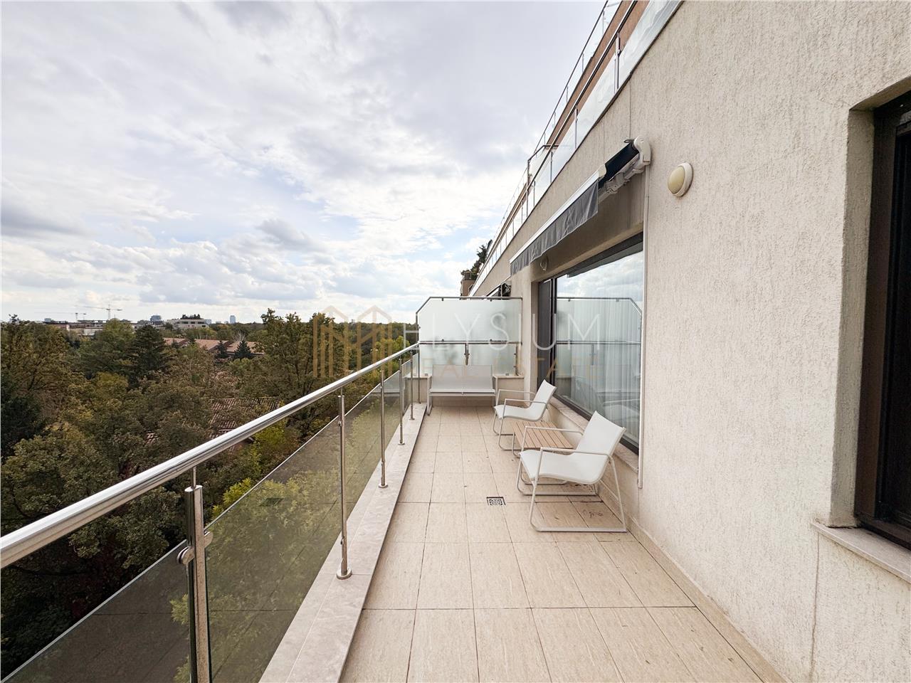 We are pleased to present this 2-bedroom apartment for rent, located in a luxury building, steps away from Soseaua Nordului and only 100 meters from Herastrau Park, on Grigore Gafencu Street. The complex features an elegant architectural design, offering a distinct level of privacy with a limited number of residential units and a select, refined community of residents. The complex also includes a beauty salon and shops on the ground floor. The area is peaceful, and surrounded by greenery and fresh air, making it a prime environment for a high-quality lifestyle.